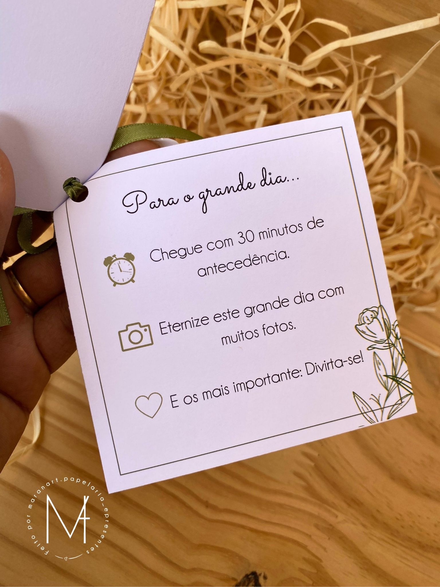 O Manual dos Padrinhos é um card personalizado que reúne todas as informações importantes para que seus padrinhos estejam alinhados e preparados, garantindo que tudo saia perfeito no casamento.